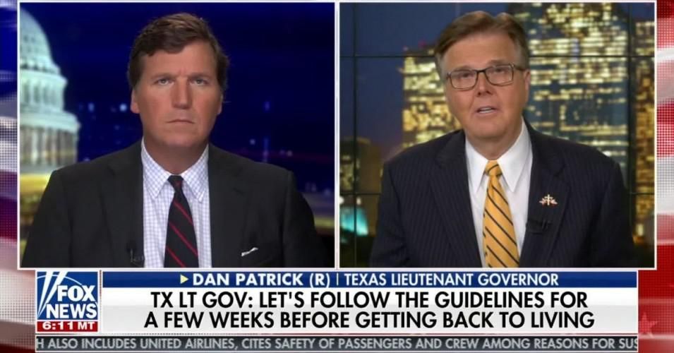 In a March 23, 2020 appearance on "Tucker Carlson Tonight," Texas Lt. Gov. Dan Patrick (R) claimed that reopening the economy was more important than adhering to public health guidelines, even though abandoning social distancing requirements and other disease mitigation measures meant exacerbating the deadly Covid-19 pandemic.