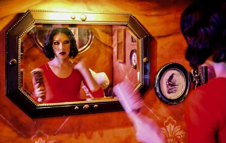 Spectators meanwhile take their seats on the other side of the curtain to the tune of Diana Ross' "I'm Coming Out".