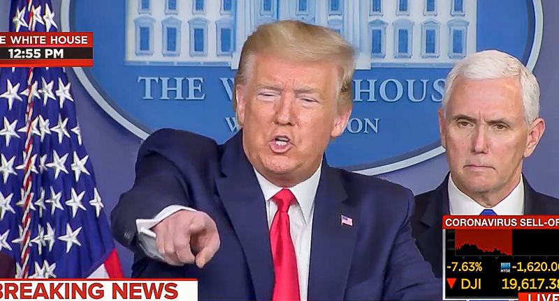 Donald Trump appears at coronavirus task force briefing (MSNBC/screen grab)
