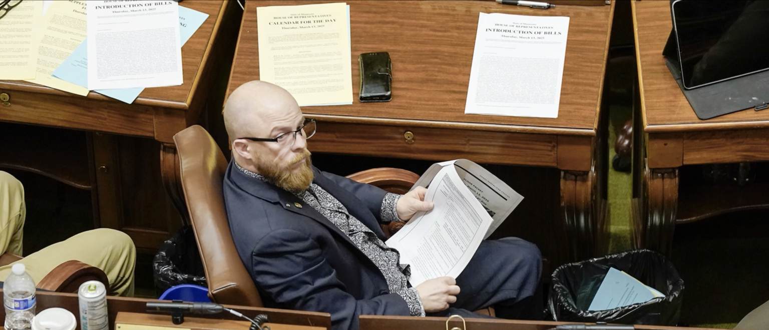 Rep. Drew Roach, R-Farmington, during floor session on March 13. Photo by Michele Jokinen/House Information Services.