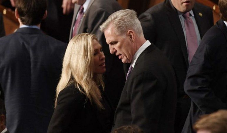Marjorie Taylor Greene, Kevin McCarthy (Photo by Olivier Douliery for AFP)
