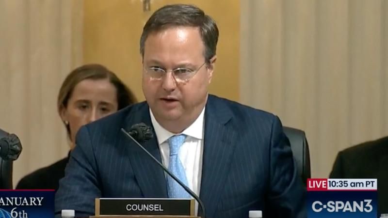 John Wood questioning a witness during a hearing of the U.S. House Select Committee on the Jan. 6 attack on the U.S. Capitol (screenshot: C-SPAN).