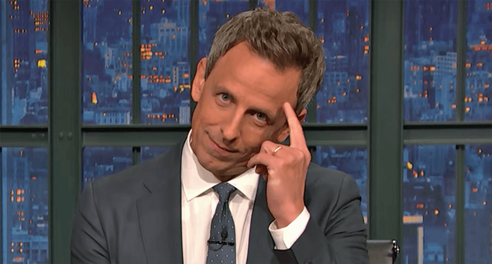 "Even if it were true, that's not very comforting," Meyers explained. "If a burglar breaks into your house with baseball bats and smashes all your belongings and steals all your money it wouldn't exactly make you feel better if the cops were like, 'Hey there are worse things in life! Eric Trump is just out there hugging people in the street!' Second, peaceful tour groups don't generally have British correspondents following them around as they smash barricades, break windows, attack police officers, and vandalize offices. If it really was a normal tourist visit that report would have been a lot less dramatic."