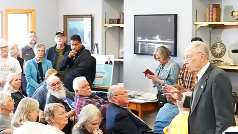 Sen. Chuck Grassley (R-IA) speaks to town hall attendees in April 2025 (Photo: Screen capture via MSNBC video)