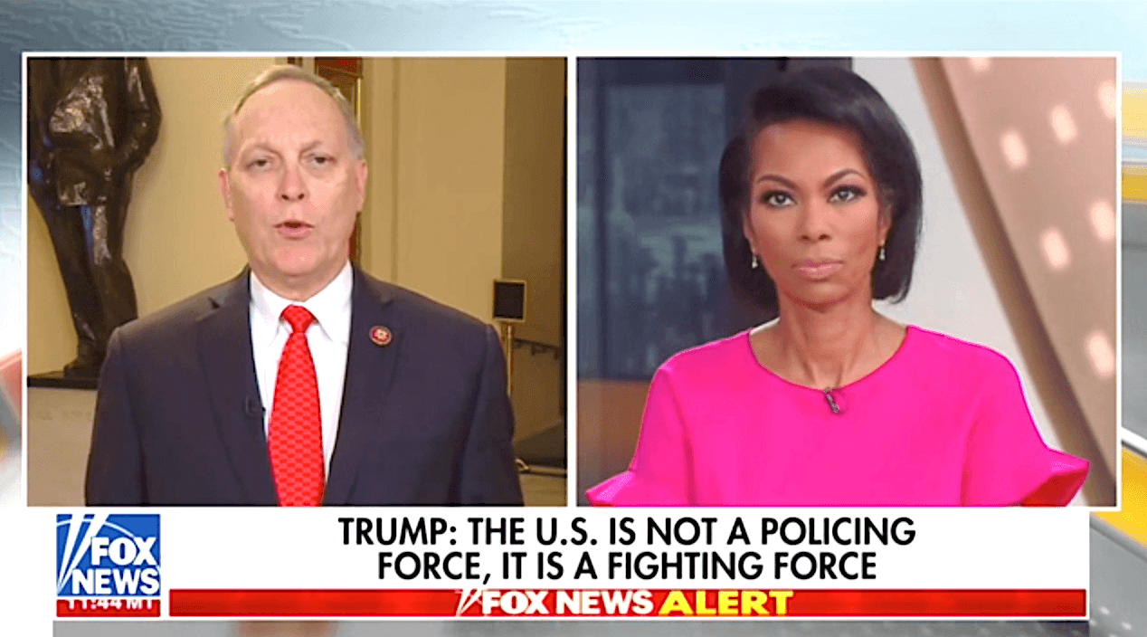 During an appearance on Fox News this Wednesday, Rep. Andy Biggs (R-AZ) hit a snag while trying to justify President Trump's earlier contention that Russia and Iran would step in to fill the void left by the US after its withdrawal from northeast Syria, saying that "Russia, Iran, Syria and to maybe slightly lesser extent Turkey, they all hate ISIS as much as we do," during a Wednesday press conference alongside Italian President Sergio Mattarella.
