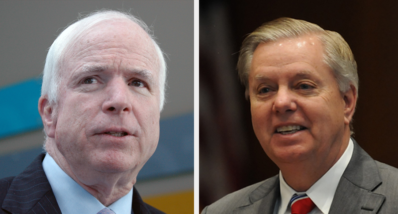 GOP senators John McCain (AZ), Lindsey Graham (SC), Dean Heller (NV) and Bill Cassidy (LA) held a press conference on Thursday to discus their discomfort with the so-called "skinny repeal" of the Affordable Care Act, also known as "Obamacare."