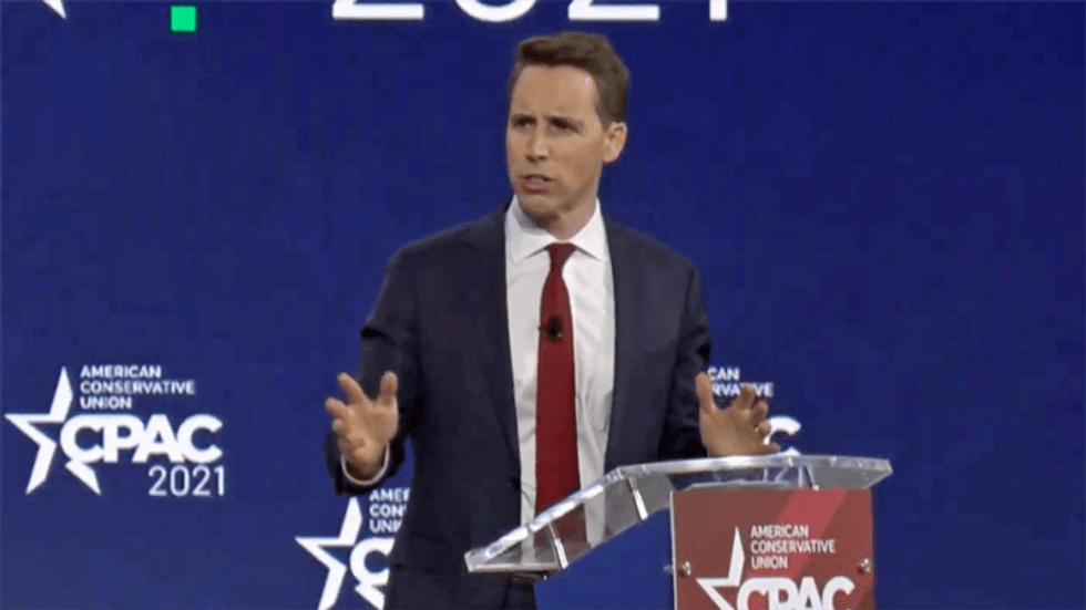 He explained that this is Hawley's continued effort to encourage violence among supporters of Donald Trump. Hawley was notoriously captured in a photo fist-pumping as Trump supporters ravaged the U.S. Capitol on Jan. 6. Walsh said that the Missouri Republican is simply copying the Trump strategy.