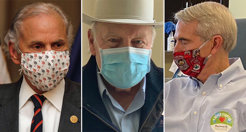 Composite image of Gov. Henry McMaster (R-SC), former Vice President Dick Cheney and Sen. Rob Portman (R-OH) wearing masks (Twitter)