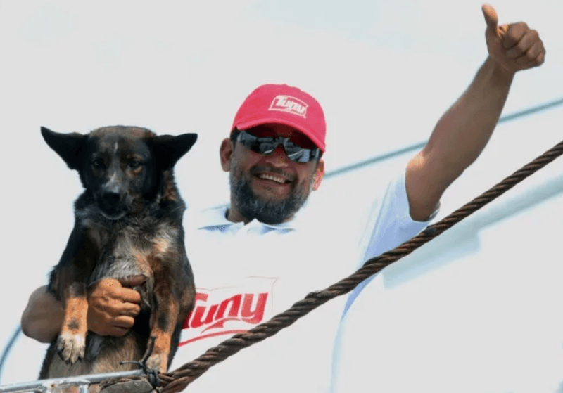 Dog Bella was picked up along with Australian sailor Timothy Shaddock after a two-month ordeal at sea (ULISES RUIZ)