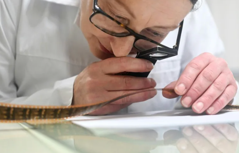 Conservators in white laboratory coats have spent months meticulously checking and cleaning reels of original negatives and copies.