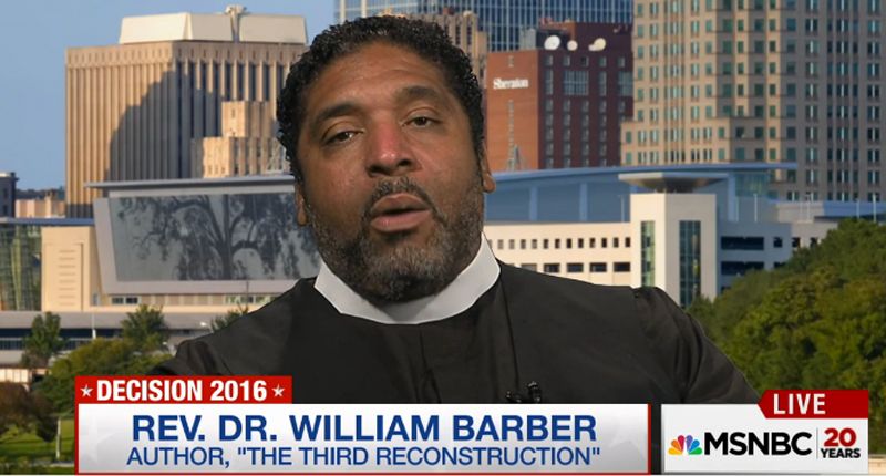 "There's so much hypocrisy and insult in what Donald Trump said," Barber began. "He is a man who has inflamed racial tension, applauded members of his rallies, who have actually hit African-Americans. He has joined in this narrative that somehow, to be against racial injustice and against racism engaged by police is to, in fact, be anti-police, when, in fact, the black and the white community that is also marching with black lives matter and the NAACP and the latino are not anti-police, we're anti-bad police."