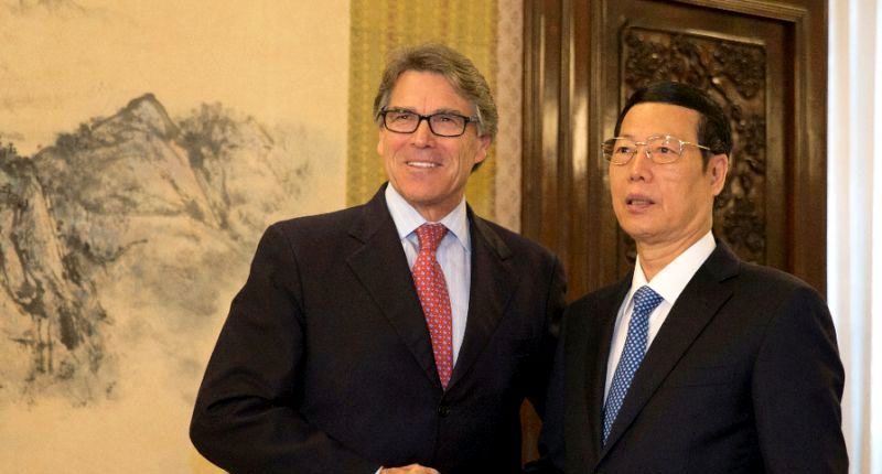 US Energy Secretary Rick Perry (left) shakes hands with China's Vice Premier Zhang Gaoli in Beijing on June 8, 2017 (AFP Photo/Ng Han Guan)