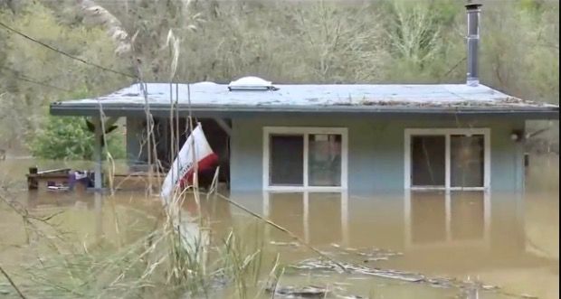 The Sonoma County Sheriff’s Office showed video on the department’s Facebook page of brown, muddy water rising above a road and flooding homes.