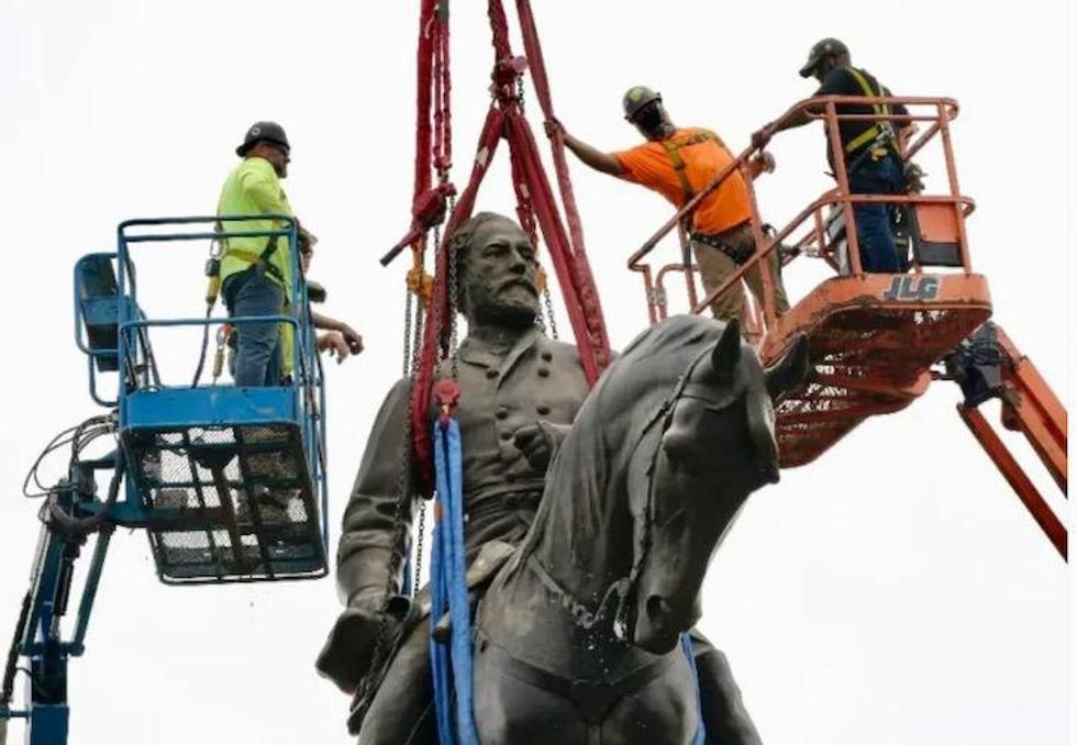 Workers remove a statue of Confederate General Robert E. Lee in Richmond, Virginia (AFP)