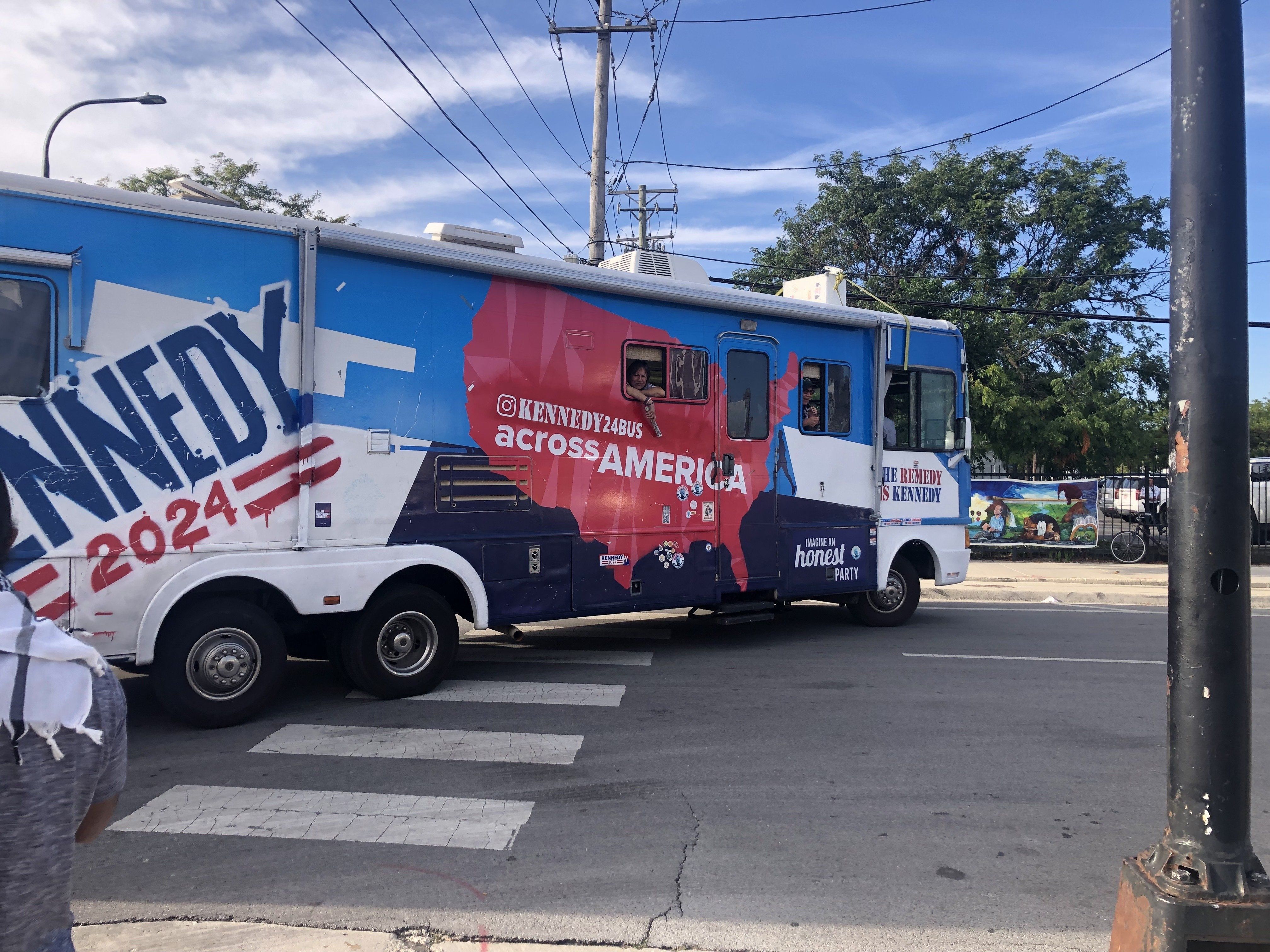 Vanessa Eggert, a Kennedy campaign volunteer canvassing and collecting signatures to get Kennedy on the presidential ballot in Illinois and Indiana, said she was “excited” to hop on the bus.