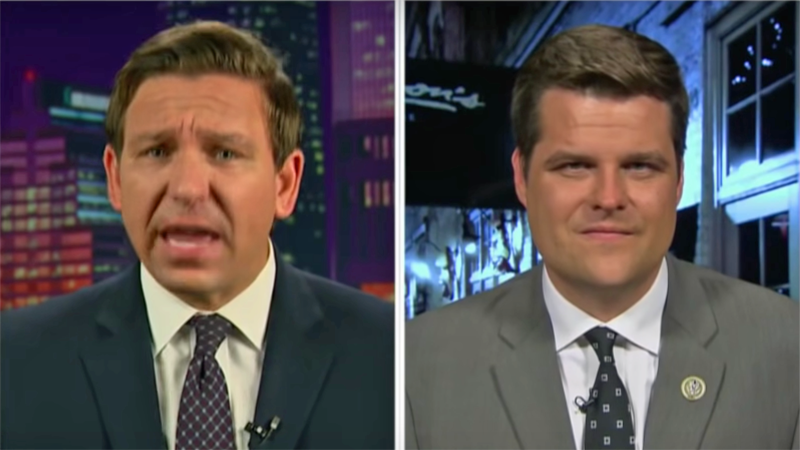 "At this point Gaetz is going around the country with the QAnon lady (Rep. Marjorie Taylor Greene) as if nothing is wrong. He's acting like it's all good. Obviously she's his ally and QAnon weirdly enough likes him although he's being accused of the thing that's central to their argument in the world," Reid noted. "DeSantis has been pretty quiet about him. He's been too busy vetoing mental health care for the survivors of the pulse nightclub and signing anti-trans bills for kids in school. Are they still allies? Who are his allies, Gaetz?"