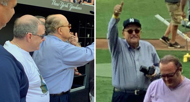 Former New York City Mayor Rudy Giuliani at a Yankees game in London (Twitter and Facebook)