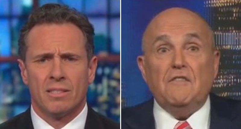 CNN host Chris Cuomo (left) and Trump lawyer Rudy Giuliani (right). Image via screengrab.