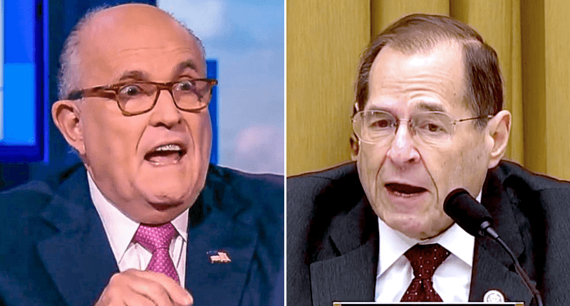 Trump attorney Rudy Giuliani (left) and House Judiciary Committee Chairman Jerry Nadler (D-NY, right). Images via screengrab.