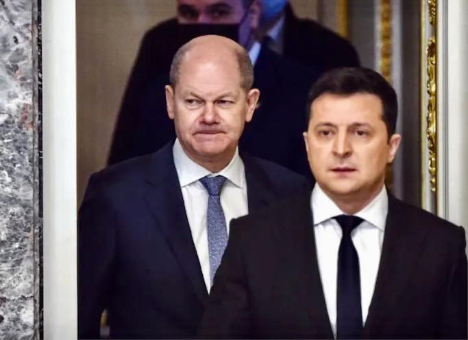 German Chancellor Olaf Scholz met with Ukrainian President Volodymyr Zelensky in Kyiv (AFP)