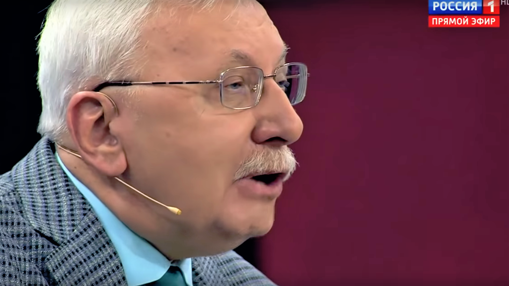Vitaly Tretyakov, dean of Moscow State University's School of Television, talks on the Russian news show '60 Minutes' (Screen cap).