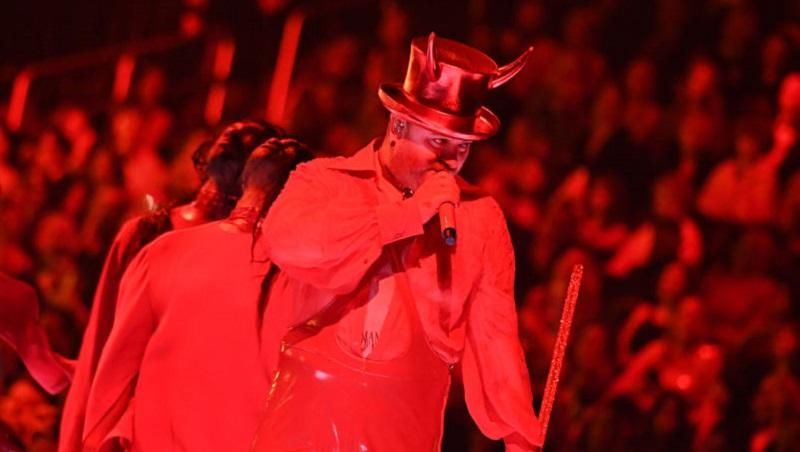 During the awards ceremony, Smith and Petras performed their song "Unholy," with Smith clad in a top hat featuring red devil horns and surrounded by red-robed female dancers.