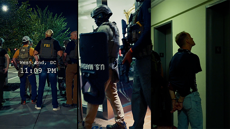 The White House posted a video of a large number of U.S. Marshals and FBI agents in riot gear with shields marching through the halls of an apartment building to calmly arrest what has become known as the "Sandwich Guy."