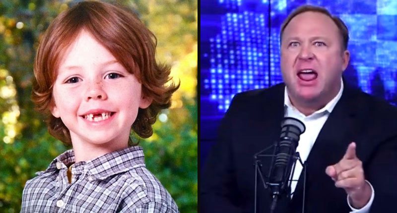7-year-old Sandy Hook victim Daniel Barden and Alex Jones (Photo via screen capture)