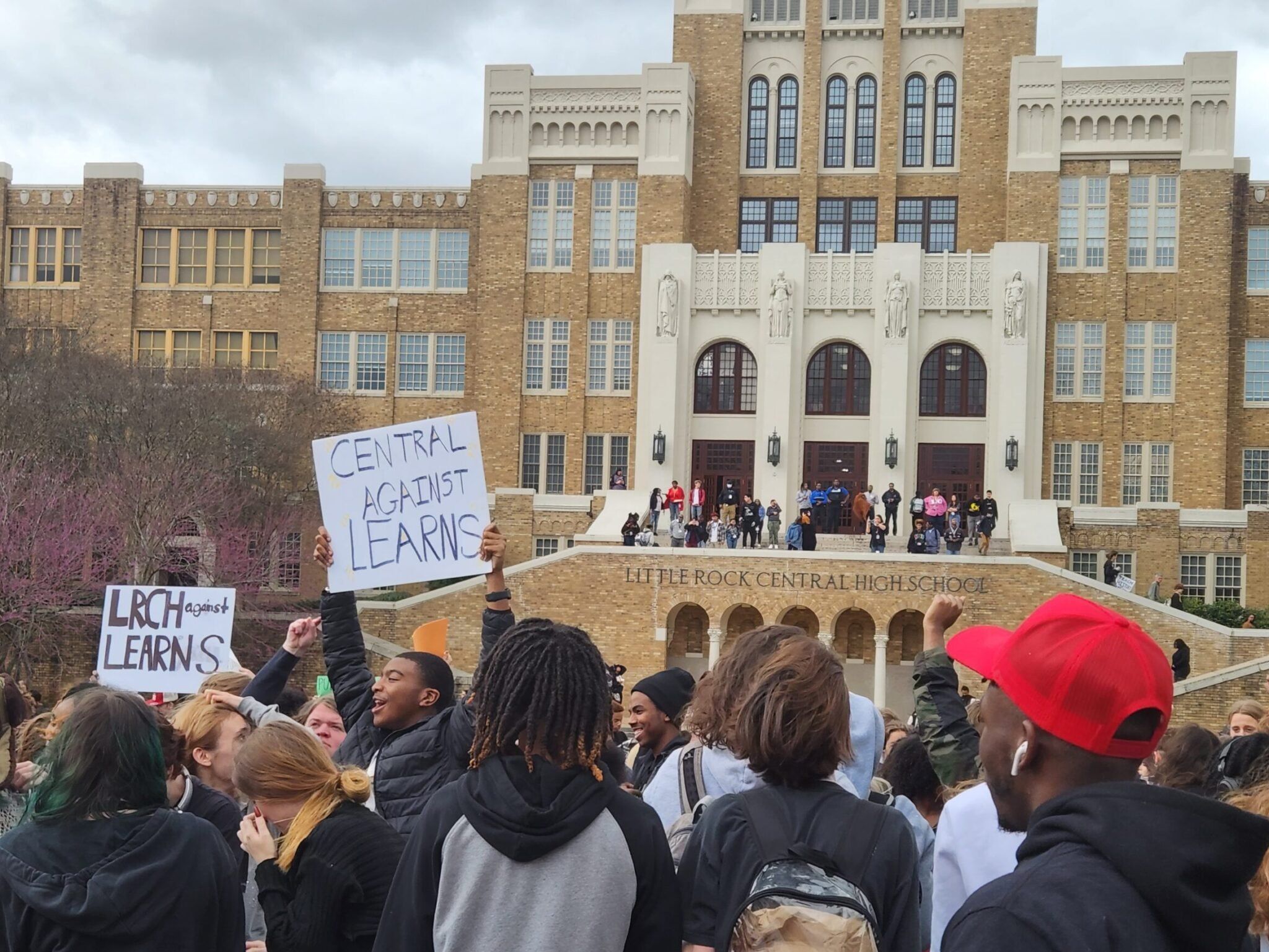 More than 1,000 Little Rock Central High School students walked out of class Friday afternoon and gathered in front of the school, protesting Gov. Sarah Huckabee Sanders’ education agenda and her references to the school while promoting it.