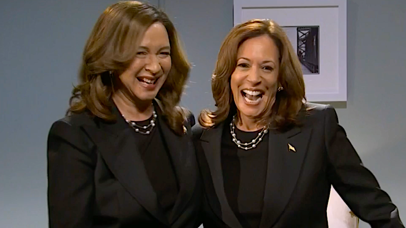 Kamala Harris made a not-so-surprise appearance on "Saturday Night Live" three days before Election Day, appearing on the other side of a false mirror from her on-air alter ego Maya Rudolph.