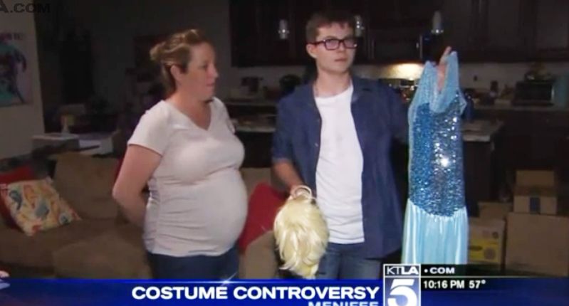 A California middle school student who thought it would be fun to dress up as Elsa from the film "Frozen" on "Disney Day" at his school, drew the ire of the school's principal who ordered the costume confiscated, reports KTLA.