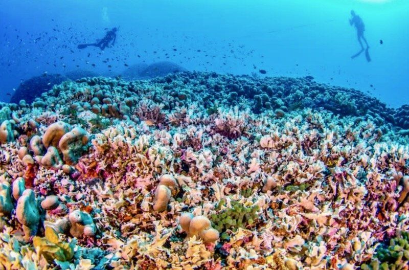 "While the nearby shallow reefs were degraded due to warmer seas, witnessing this large healthy coral oasis in slightly deeper waters is a beacon of hope," said coral scientist Eric Brown.