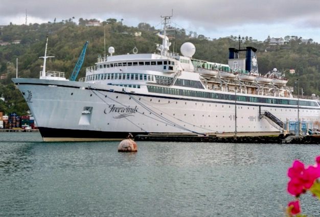 The Freewinds cruise ship owned by the Church of Scientology is docked in quarantine at the Point Seraphine terminal in Castries, Saint Lucia