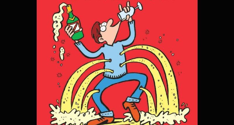 The much awaited cover for the edition to appear Wednesday, by cartoonist Coco, depicts a dancing reveller, bottle and glass in hand, with champagne pouring out of holes in his body.