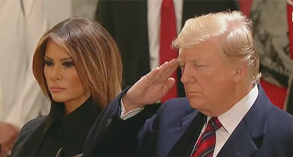 Melania Trump and Donald Trump saluting to George H.W. Bush as he lies in state at the U.S. Capitol