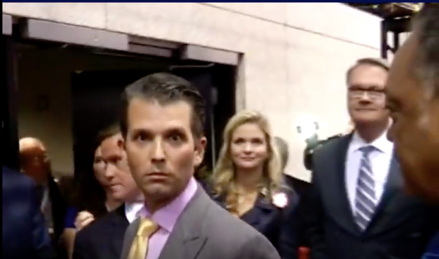 A woman smirks as Donald Trump Jr. gets called out by Rev. Jesse Jackson (Screen capture)
