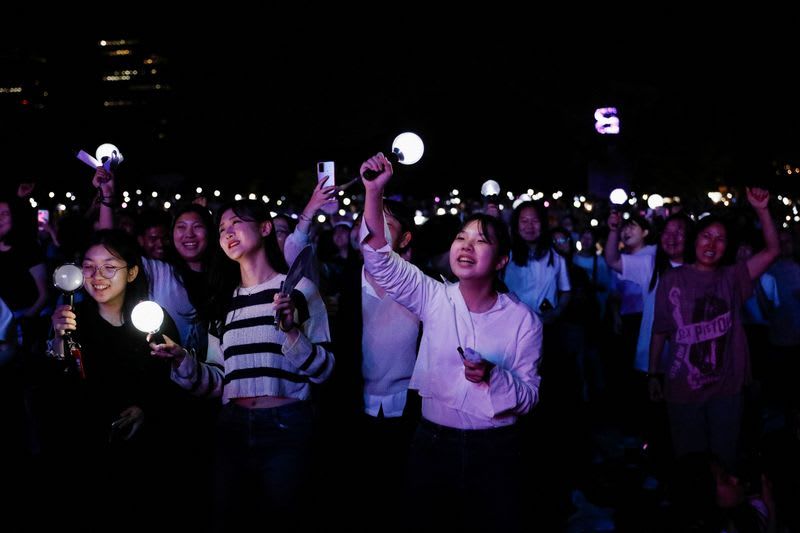 SEOUL (Reuters) -An estimated 400,000 people gathered in South Korea's capital Seoul on Saturday as fans from around the globe commemorated the 10th anniversary of the debut of K-Pop boy band juggernaut BTS. The band is on temporary break as a group with two of its seven members currently doing mandatory military service, but that did not stop a host of celebratory events this week catering to a loyal fanbase known as "ARMY". At the "BTS 10th Anniversary FESTA" at Han River Park in Seoul on Saturday, tens of thousands of fans wandered among various exhibits including a BTS history wall, stage ...