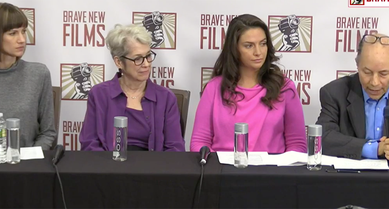 Rachel Crooks, Samantha Holvey and Jessica Leeds with documentarian Robert Greenwald (Photo: Screen capture)