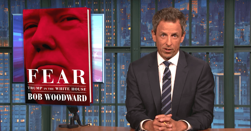 Late Night host Seth Meyers discussed Bob Woodward's upcoming book, Fear, joking that people do not need to read multiple books to reveal how smart President Donald Trump is.