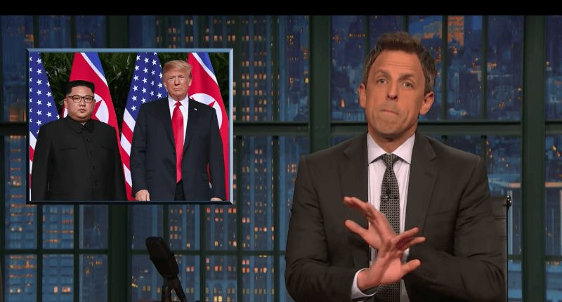 Seth Meyers mocked President Donald Trump's notorious meeting with North Korean leader Kim Jong-un on Monday in Singapore.