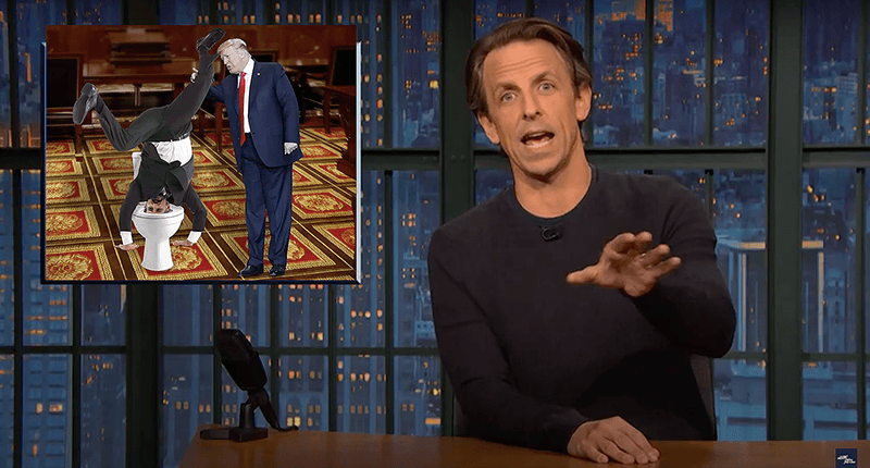 Referring to him as "knock-off General Zod," Meyers said he would have found it amusing to see Cruz speaking out for a candidate "who attacked his wife and said his dad killed JFK. The only way it could have been more pathetic is if Trump was giving him a swirly during the hearing."