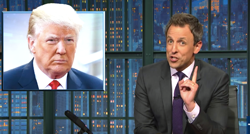 "This is the final straw?" Seth Meyers said. "Not the racism or the misogyny or the wall?"