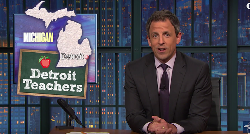 Detroit teachers are getting royally screwed, and Seth Meyers won't stand for it. Like the Flint water crisis, Detroit's schools have come under the rule of Gov. Rick Snyder's emergency manager that was appointed by the state. Not long after that, $30 million disappeared.
