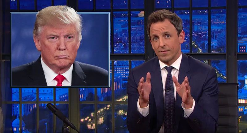 Meyers then turned to Trump's promise during the Sunday night debate to have rival Hillary Clinton prosecuted if he wins in November.
