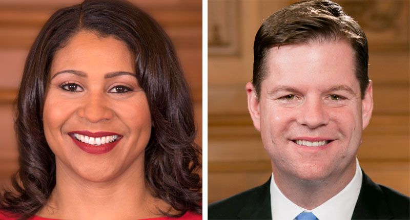 Former Mayor London Breed (left) and new interim Mayor Mark Farrell (right). Composite image.