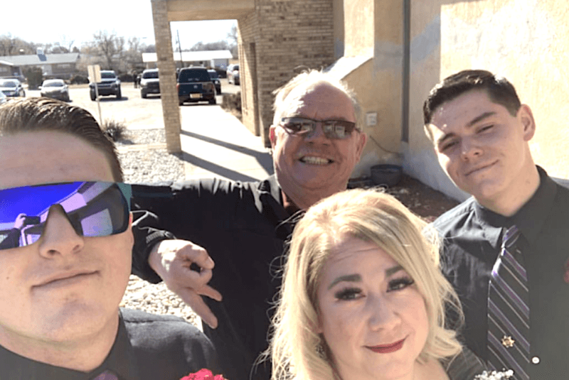 The photo shows Lujan making the sign with his right hand while standing with his wife, Julie Casados, and their two sons. The picture was later deleted from her Instagram account.