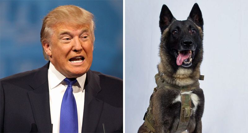 Composite image of Donald Trump (by Gage Skidmore) and a K-9 whose name is Conan (Twitter)