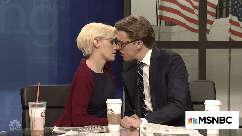 SNL's Kate McKinnon and Alex Moffat as Mike Brzezinksi and Joe Scarborough (Screen capture)