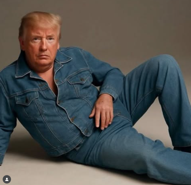 Donald Trump Jr. posted a bizarre gushing over his dad as he shared a denim-clad AI image of the 79-year-old president with the comment, “so hot!”