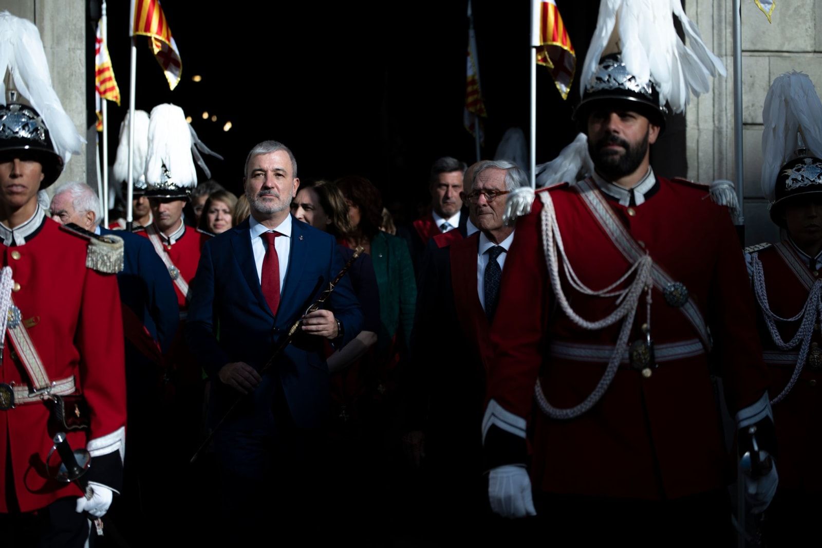 The new councilors leave the Barcelona City Hall and cross the Sant Jaume square after the plenary session of the constitution of the Consistory, led by the new mayor Jaume Collboni to attend the traditional reception of the President of the Generalitat at the Palau de la Generalitat. Lorena Sopêna/EUROPA PRESS/dpa